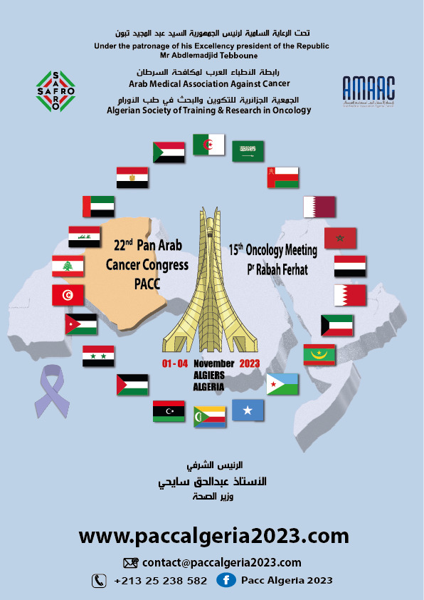 J’ai l’honneur et le plaisir de vous informer que la Société Algérienne de Pathologie ASPATH 2000, et conformément à ses objectifs de formation continue, organise sa 2 ème journée régionale qui se déroulera le 11 Novembre 2023 au complexe touristique CET de Tipaza ; Le programme de cette journée est riche et varié, et aura pour thème principal « les actualités des classifications OMS » qui seront abordées par plusieurs pathologistes nationaux, chacun dans son domaine d’expertise. Ainsi, il y aura 7 présentations qui porteront sur la dernière classification OMS des tumeurs (5ème édition ) publiée entre 2020 et 2023 : Tumeurs cutanées, des tissus mous, des tumeurs oculaires, des organes endocrines et des tumeurs Neuroendocrines, des tumeurs du système hématopoïétique , des tumeurs urologiques et en dernier, les tumeurs nerveuses. Ces présentations seront suivies par 3 ateliers consacrés à un thème d’actualité en pathologie, qui est l’interprétation du PDL1, dont le rôle en immunothérapie et dans la médecine de précision est bien démontré. Des communications affichées sous forme de e-posters portant sur diverses pathologies seront également présentées.